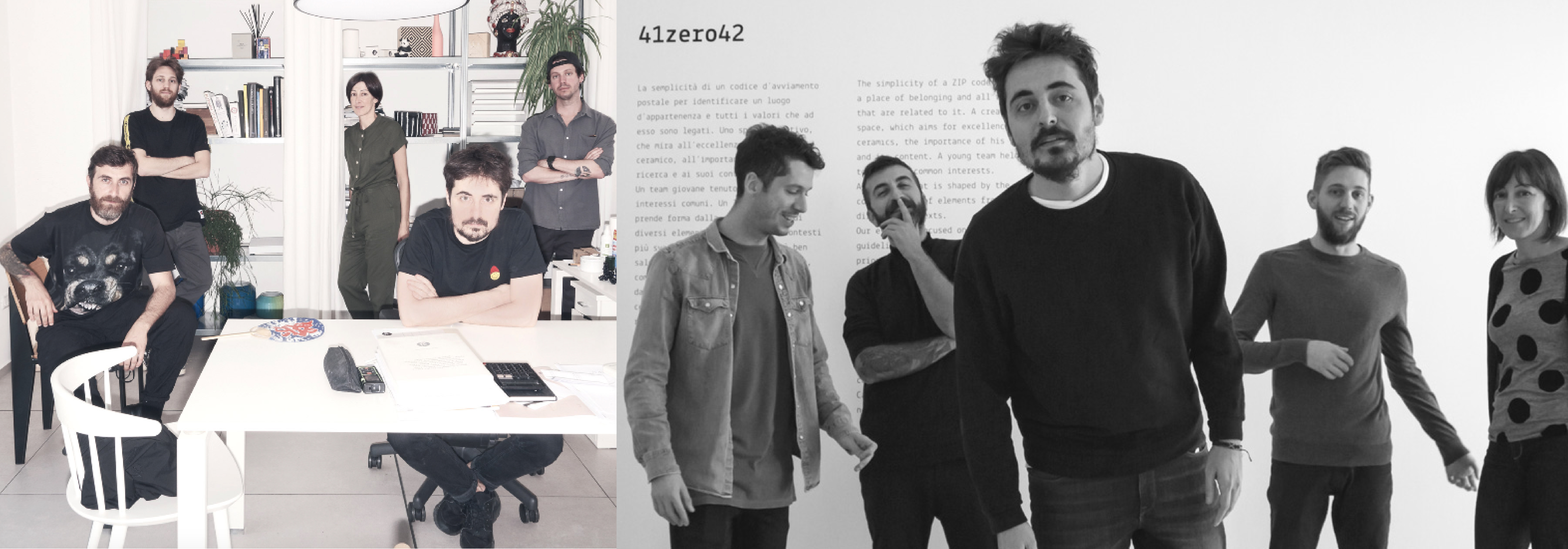 41042 就是此品牌的起源地郵政編號,郵政編號的簡單性,可以識別歸屬地,以及相關的所有價值。一個創意空間,目標在研究及追求卓越的陶瓷工藝。一種由許多不同情境元素混雜而成的語言。工業和手工元素、充滿活力和中性的色彩、極簡主義的環境和極簡主義的設計混合了各種不同的性質:多種相互關聯的語言為建築設計帶來了新的生機。